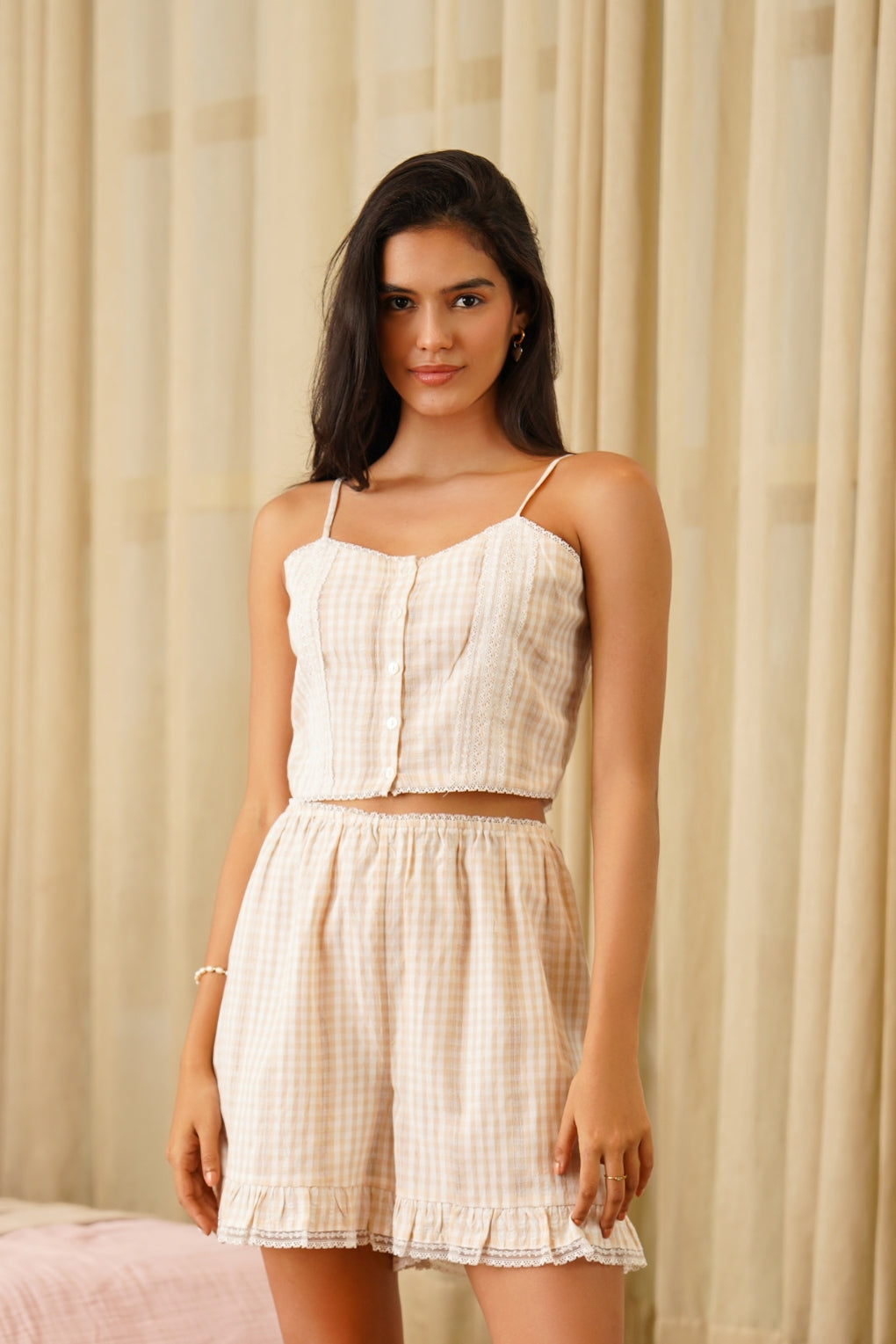 The Bellezza Amalfi Tank is your go-to piece for relaxed elegance. Crafted from checkered soft fabric, it’s designed to keep you comfortable while exuding a modern, minimalist appeal. Perfect for warm nights or laid-back afternoons, this tank pairs effortlessly with any lounge bottoms for a chic, casual look.
