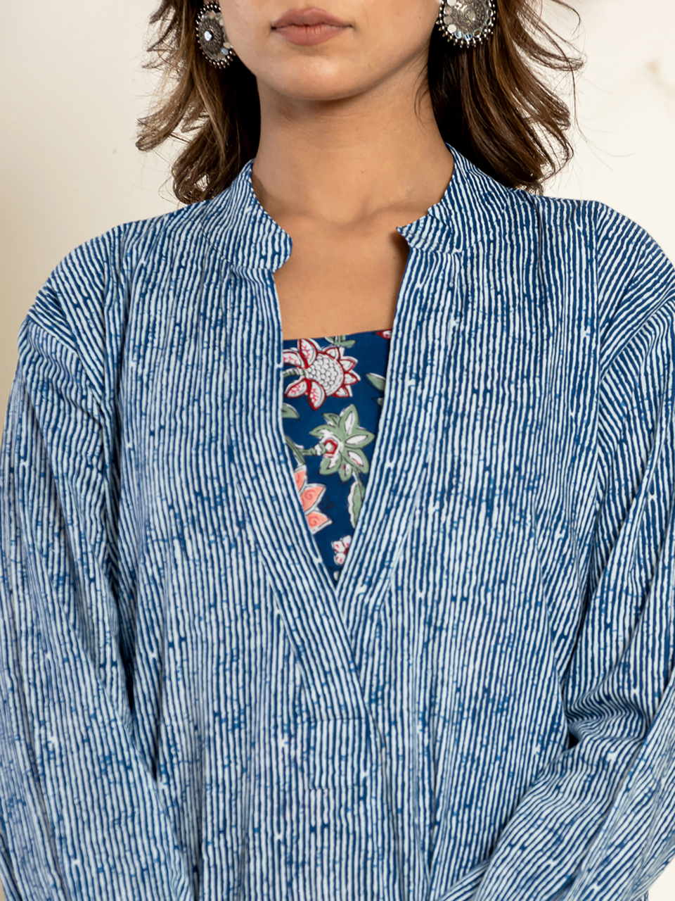 Blue Prosecco deep V neck block print 2 - piece Pure Cotton set
