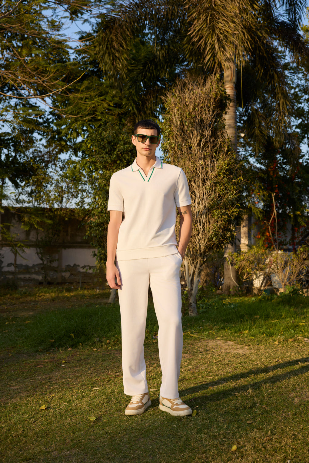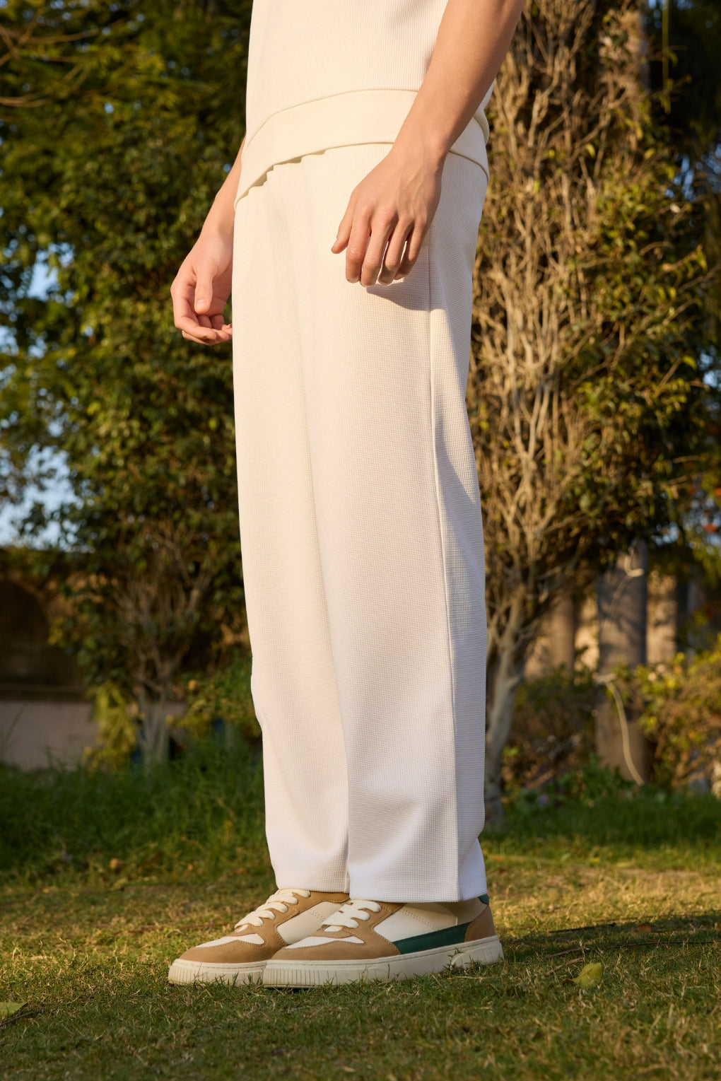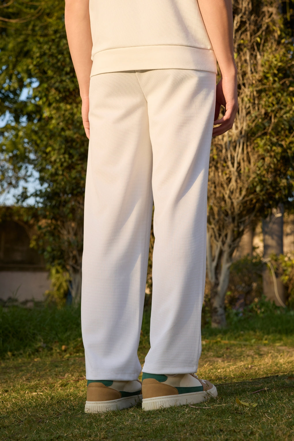 Upgrade your everyday essentials with these Bogey Stripe Pant , crafted in textured waffle fabric for a modern yet comfortable feel. The structured yet breathable material offers a refined look with a laid-back edge, while the stripe rib waistband adds a sporty, stylish touch. Elevate your everyday look with these textured waffle straight pants, where style meets function in the most effortless way.