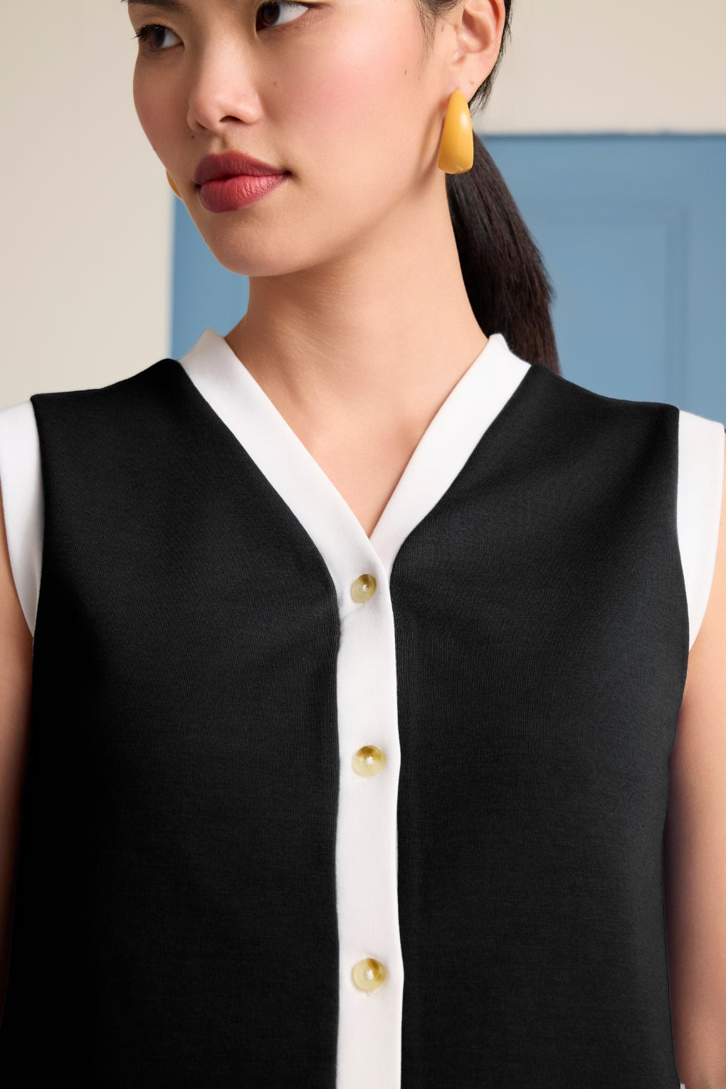 Upgrade your summer wardrobe with this easy-to-style, travel-friendly tank top that blends comfort and sophistication effortlessly. Crafted for comfort and style, this regular boxy-fit tank top is designed in a breathable, summer-friendly fabric, making it a perfect travel essential. The contrast detailing on the front neck, armhole, and bottom adds a chic touch, while the front horn button opening enhances its relaxed yet polished appeal. Whether paired with shorts, skirts, or layered under a jacket, this tank top is a versatile must-have for warm-weather adventures.