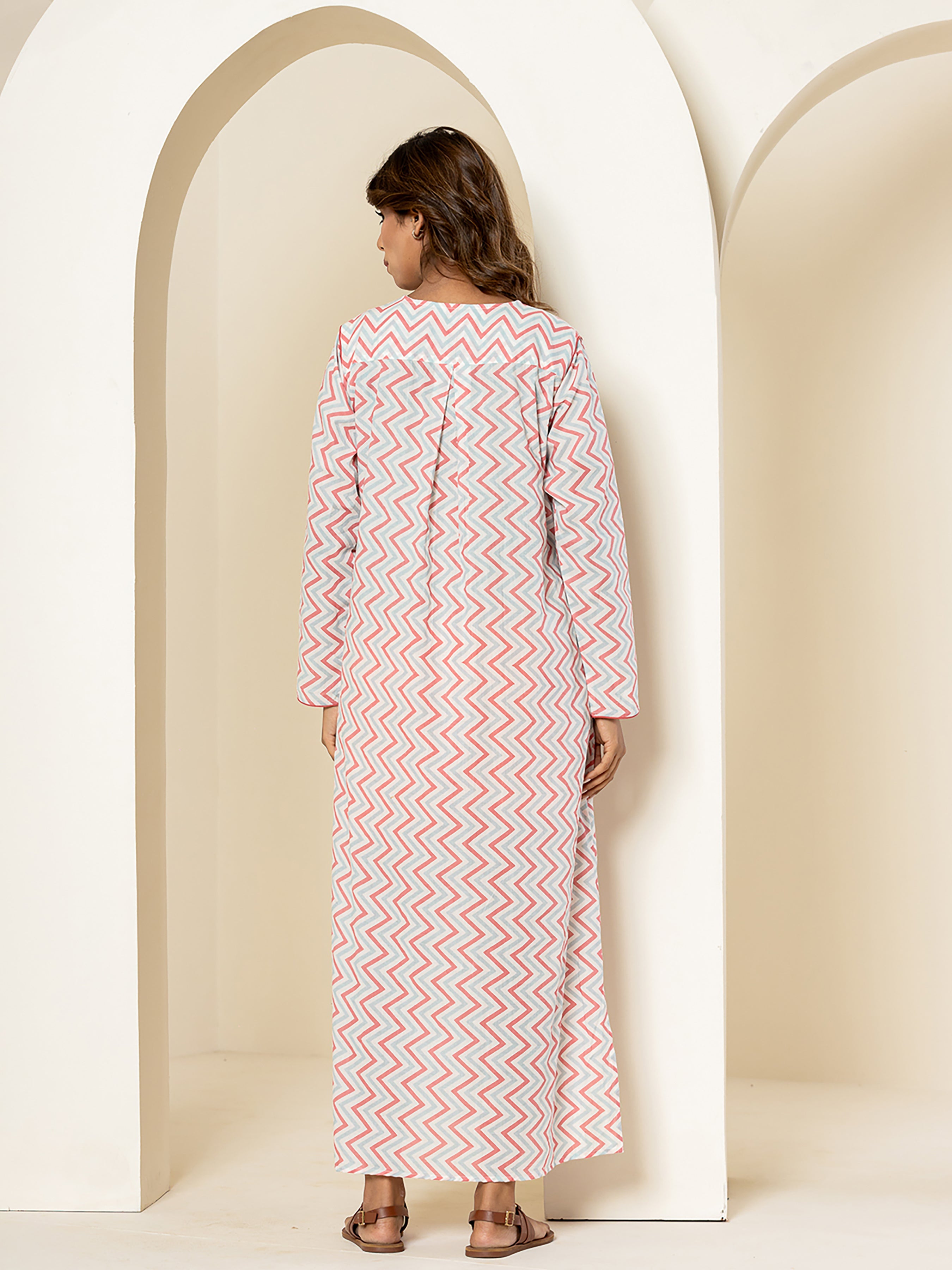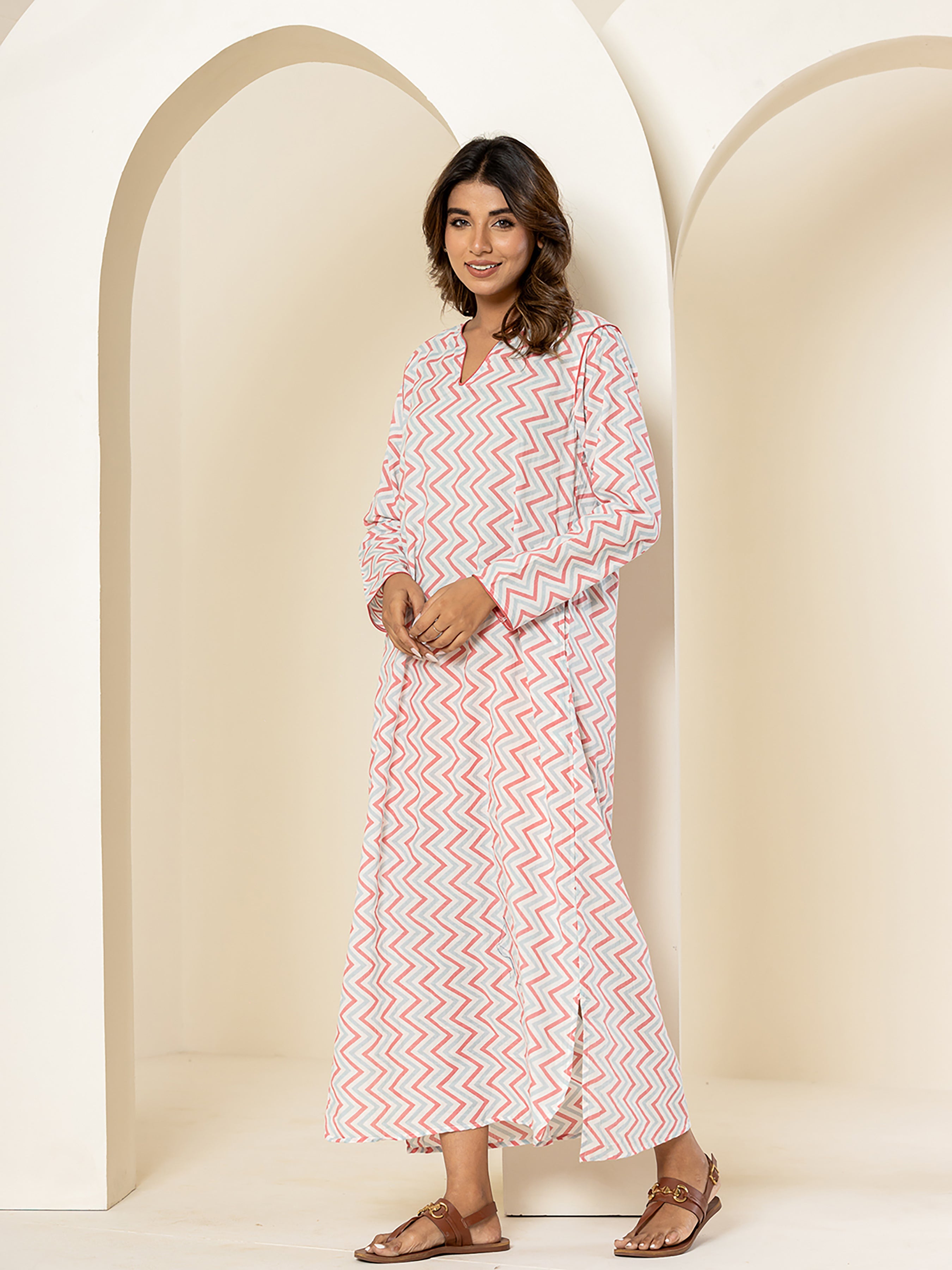 Experience elevated elegance with the Cotton Maxi, a luxurious addition to your loungewear collection. This tunic features a calming color scheme for a sophisticated and exclusive aesthetic.